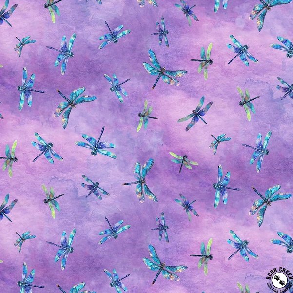 Timeless Treasures Dragonfly Mist Flying Dragonflies Lavender