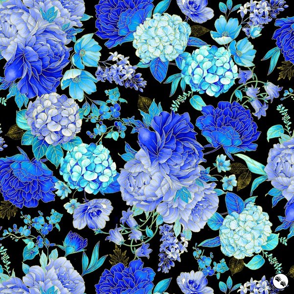 Timeless Treasures Escapade Floral Bouquet Black