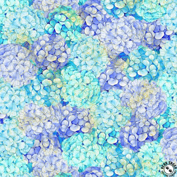 Timeless Treasures Escapade Packed Hydrangea Blue