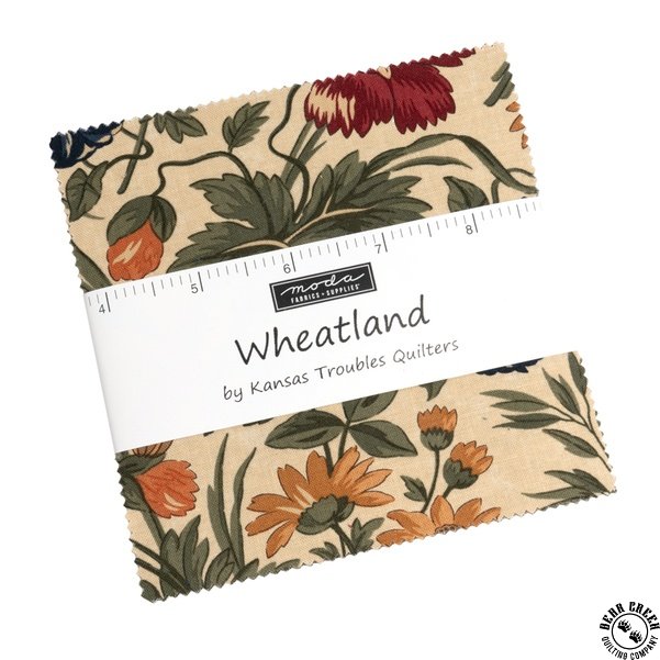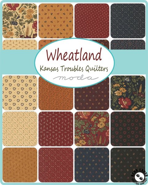 Welcome to Wheatland!  The featured fabric in this line tells the story of summers in Kansas and all across the Midwest.  When I look out my back window, the wheat stalks are gently bending in the breeze with an assortment of wildflowers scattered along the fence line.  The scene is a living painting of natures bounty.  I've added smaller prints of wheat, flowers, vines, and berries to round out this ode to summer.  A classic KT palette of warm reds, golds, pumpkins, purples, greens, blues, and blacks contrast with an assortment of soft tans to create a lovely collection of fabrics for your next quilting project.  Come with me to Wheatland and surround yourself with the natural beauty of the countryside.