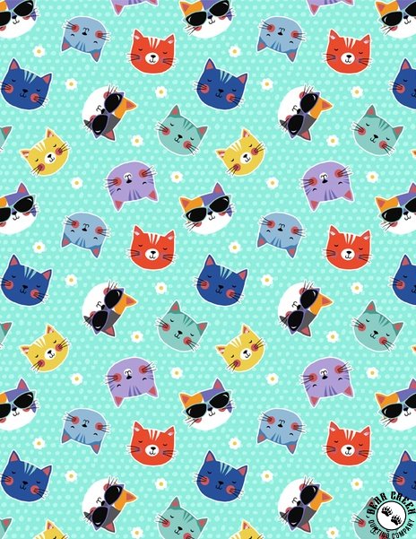 Wilmington Prints Fe-Line Frisky Cat Heads Teal