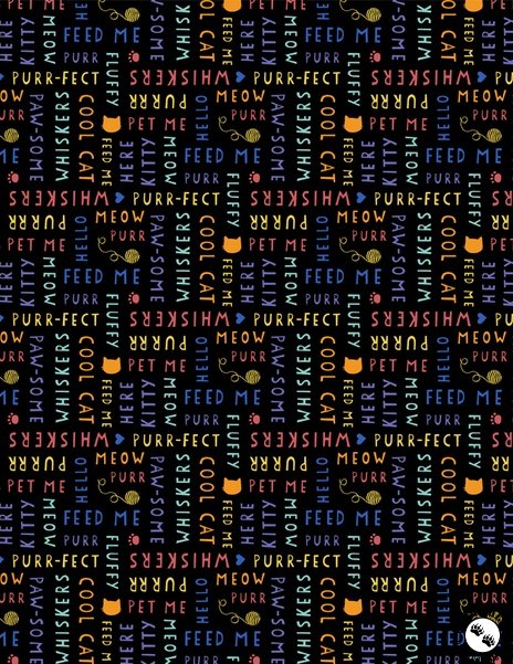 Wilmington Prints Fe-Line Frisky Words All Over Black