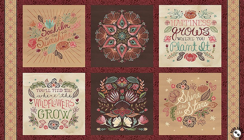 The Floralscape fabric collection brings together a harmonious blend of florals, damasks, and geometric patterns in a rich, sophisticated palette of cream, deep brown, red, teal, and pink.