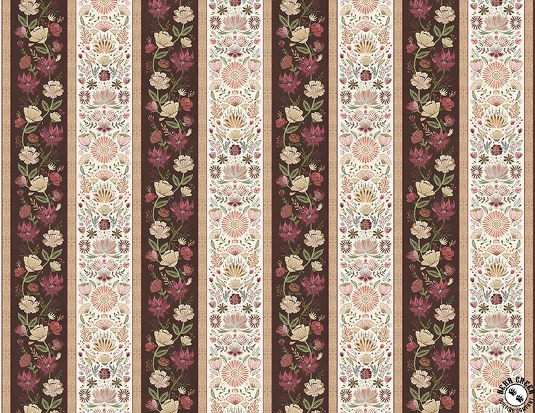 The Floralscape fabric collection brings together a harmonious blend of florals, damasks, and geometric patterns in a rich, sophisticated palette of cream, deep brown, red, teal, and pink.