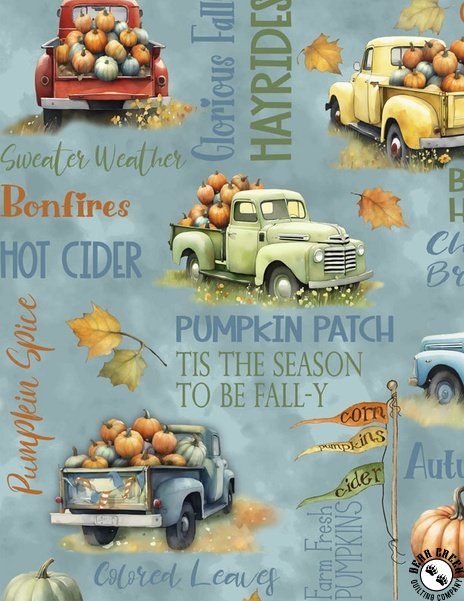 Glorious Fall  is a warm and inviting fabric collection that beautifully captures the spirit of autumn.  With its rich blend of pumpkins, colorful leaves, and tranquil skies, this collection evokes the cozy charm of the season.  It features versatile placemat panels and a repeating stripe, along with an array of coordinating prints including packed and tossed pumpkins, serene skies, classic gingham, and scattered autumn leaves — perfect for seasonal quilting and home decor projects.
