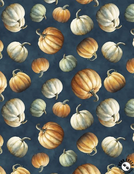 Wilmington Prints Glorious Fall Tossed Pumpkins Blue