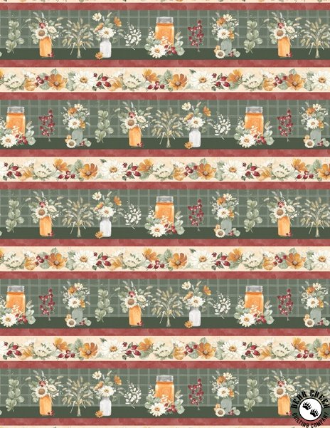 Harvest Blooms  is a charming fabric collection that captures the warmth and beauty of autumn. Featuring seven unique patterns—including a versatile repeating stripe, lush packed florals, playful dots, and harvest-inspired prints—this line offers endless creative possibilities. The palette glows with cozy creams, vibrant reds, rich sage greens, and bright oranges, all enhanced by delicate watercolor textures and nature-inspired motifs. Perfect for quilts, home decor, or seasonal projects, Harvest Blooms  brings the essence of fall to life in every stitch.