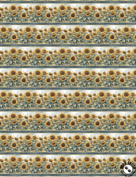 Sunkissed  radiates the warmth and charm of sunflowers in full bloom. This cheerful collection features a bold large panel and a versatile border stripe, paired with sunflower, bee, and honeycomb motifs that capture the beauty of nature. Soft watercolor textures, playful plaids, and a vibrant palette of blues, yellows, and greens bring a fresh, sunlit feel to every design. Perfect for quilts, home decor, and seasonal accents, Sunkissed  adds a touch of golden sunshine to any room.