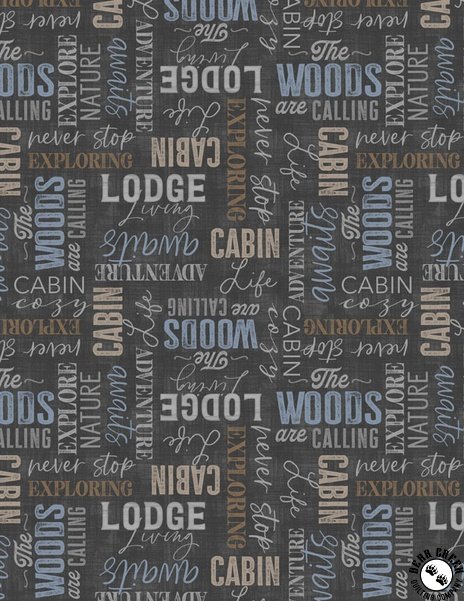 Wilmington Prints Timberland Trails Words All Over Dark Gray