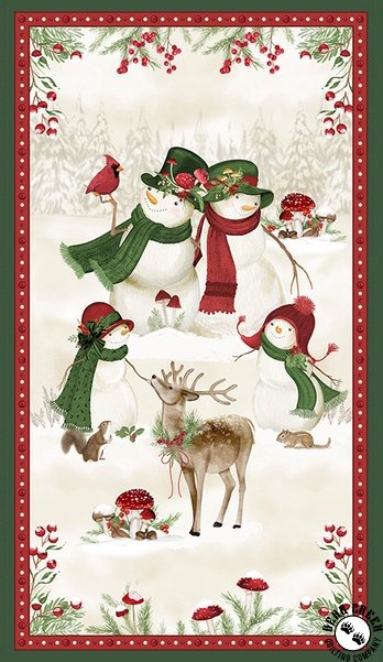 Step into a winter wonderland with Woodland Snowmen, the delightful new fabric collection by Danielle Leone for Wilmington Prints. This charming assortment features a large panel, a whimsical repeating stripe, and coordinating prints filled with playful snowmen, woodland animals, and delicate snowflakes—all in a cozy palette of wintry cream, festive red, and forest green. Perfect for seasonal quilts, home decor, and holiday crafts.