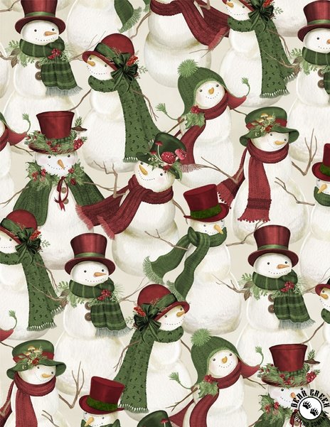 Wilmington Prints Woodland Snowmen Packed Snowmen Cream