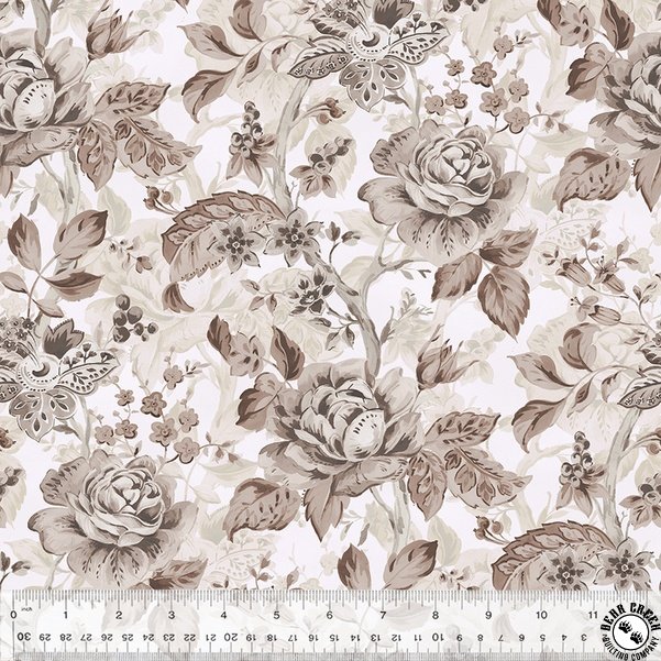 Discover the beauty of simplicity with Dwell,  a serene collection in soothing taupe and cream tones. Delicate florals, intricate tile motifs, and softly scattered blossoms create a versatile mix of patterns, ideal for quilts and projects that radiate warmth and quiet sophistication.