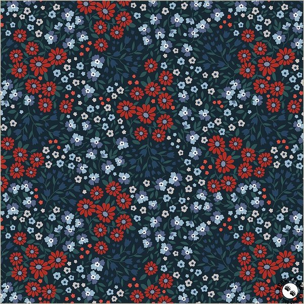 Front Porch  is a fabric collection that blends modern florals, patchwork stars, and versatile basics into a cohesive, inviting palette.  Cool blues, rich reds, and hints of jade green create a relaxed, laid-back mood.  Ideal for quilts, garments, or bags, the collection brings a refreshing, effortless charm to any project.  Inspired by peaceful summertime routines—sitting on the front porch with a drink, watering flowers as the day cools, and watching children play in the yard—Front Porch  captures the nostalgia and calm of those simple evening moments.