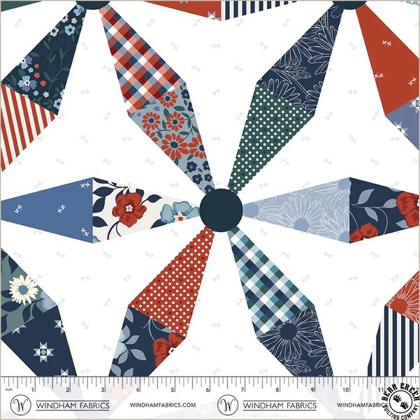 Front Porch  is a fabric collection that blends modern florals, patchwork stars, and versatile basics into a cohesive, inviting palette.  Cool blues, rich reds, and hints of jade green create a relaxed, laid-back mood.  Ideal for quilts, garments, or bags, the collection brings a refreshing, effortless charm to any project.  Inspired by peaceful summertime routines—sitting on the front porch with a drink, watering flowers as the day cools, and watching children play in the yard—Front Porch  captures the nostalgia and calm of those simple evening moments.