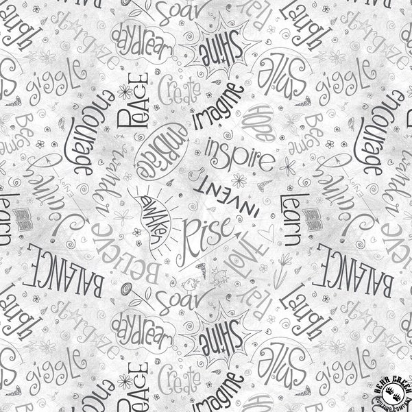 "We all need a pick-me-up from time to time. A word of affirmation or a word of encouragement. Positive vibes are good for the soul. As I was reflecting on this, I started jotting down active words that were just, well, positive. And because I love to create my own lettering, I let the words speak and come to life. My hope is that these fabrics will inspire you in a positive way!" ~Terri