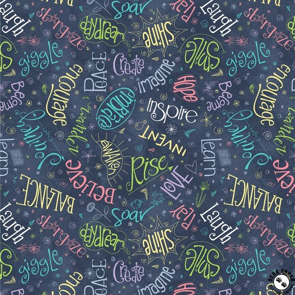 "We all need a pick-me-up from time to time. A word of affirmation or a word of encouragement. Positive vibes are good for the soul. As I was reflecting on this, I started jotting down active words that were just, well, positive. And because I love to create my own lettering, I let the words speak and come to life. My hope is that these fabrics will inspire you in a positive way!" ~Terri