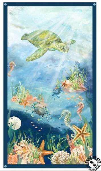 Dive into the serene beauty of Ocean Life.  This fabric collection features a striking underwater panel highlighting gentle sea turtles drifting among coral reefs, starfish, and seahorses.  Coordinating prints in soft, beach-inspired shades of blues, corals, and sandy neutrals bring the peaceful rhythm of the ocean to your creative projects.