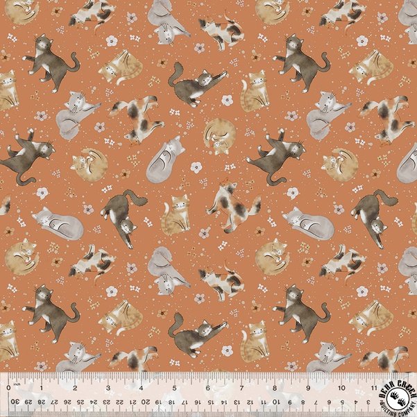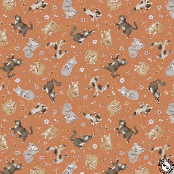 Windham Fabrics Petal and Purr Feline Friends Rust