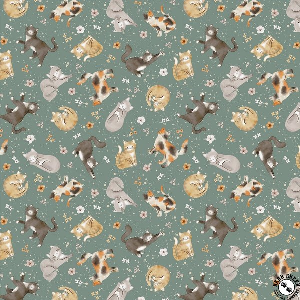 Windham Fabrics Petal and Purr Feline Friends Sage
