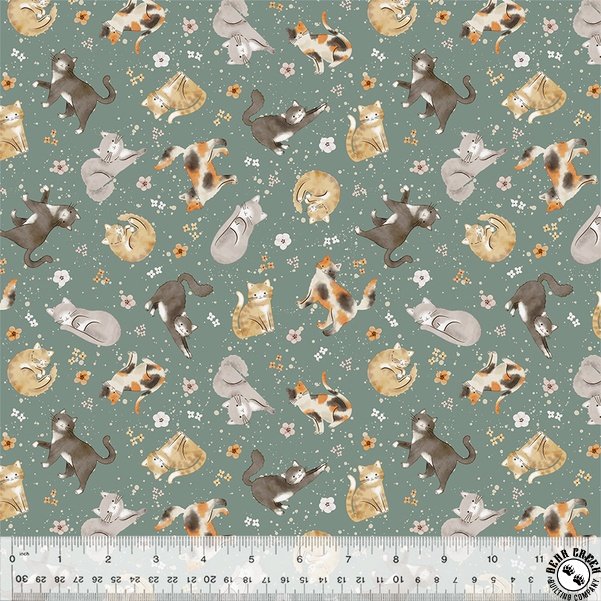 Windham Fabrics Petal and Purr Feline Friends Sage