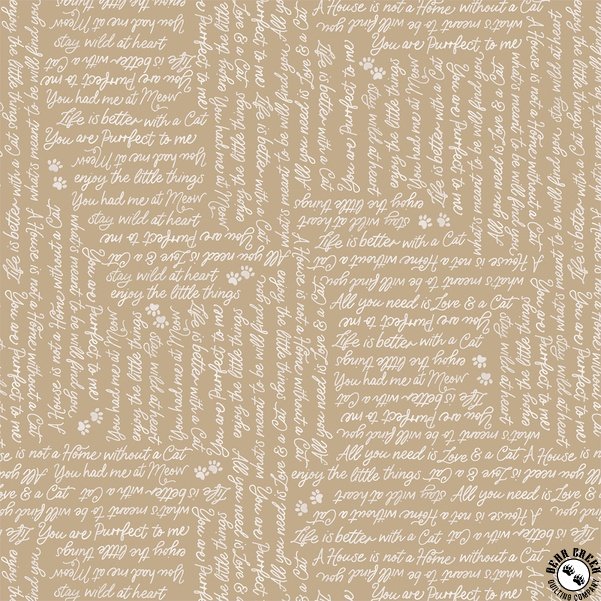 Windham Fabrics Petal and Purr You Had Me at Meow Taupe