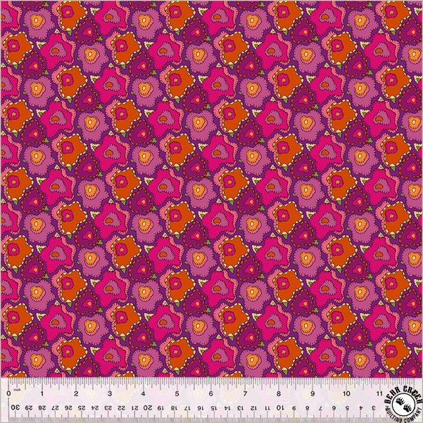 Dancing moths, beautiful butterflies, dragonflies and a myriad of little creatures dance amongst the magic flowers and playful leaves of the storybook Twilight  fabric prints. Each element is heavily patterned to create a camouflage, rich in detail. A rainbow leaf stripe provides a jazzy trim and some small simple florals bring some relief to the more detailed prints. This collection is perfect for embellishment and lovers of nature, more is more is more!  ~Sally