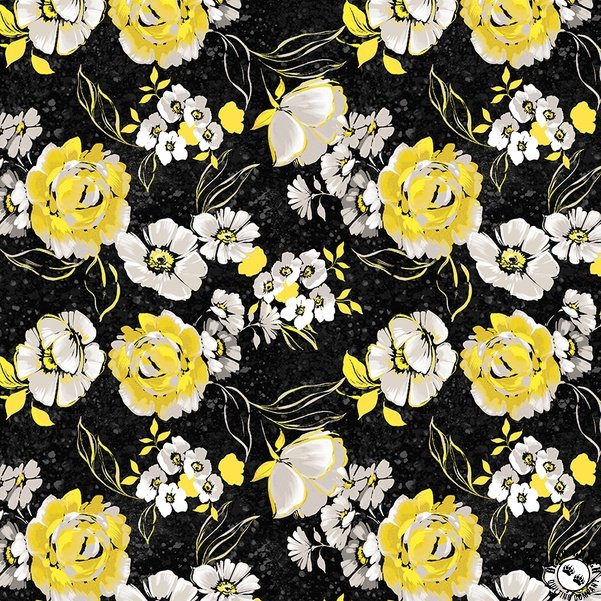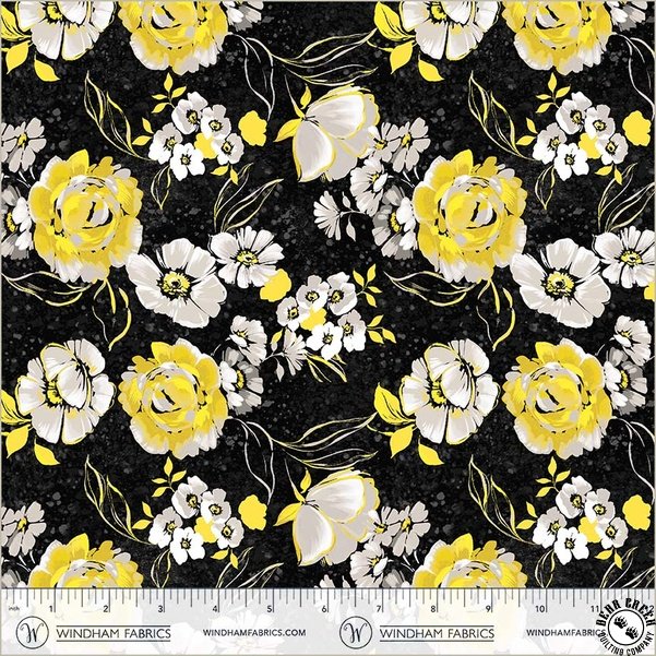 Verona  is a sophisticated and timeless fabric collection that blends classic yellow, black, and grey into a striking array of designs.  Florals, swirling leaves, intricate tile motifs, painterly bias stripes, and playful dots come together in perfect harmony.  Balancing elegance with versatility, Verona  brings a bold yet graceful presence to quilts, home decor, and treasured sewing projects.