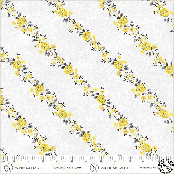 Verona  is a sophisticated and timeless fabric collection that blends classic yellow, black, and grey into a striking array of designs.  Florals, swirling leaves, intricate tile motifs, painterly bias stripes, and playful dots come together in perfect harmony.  Balancing elegance with versatility, Verona  brings a bold yet graceful presence to quilts, home decor, and treasured sewing projects.