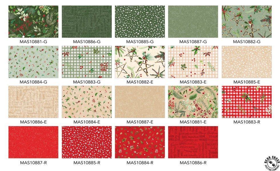 Bring the beauty of nature indoors this holiday season with Winter Wreaths from Maywood Studio. Brimming with twigs, sprigs, and berries, this collection offers everything you need for festive projects, printed on soft natural creams, rustic reds, and muted greens. The running yardage features blocks of unique wreath designs — perfect as quilt cornerstones, block centers, or charming focal points in your seasonal creations.