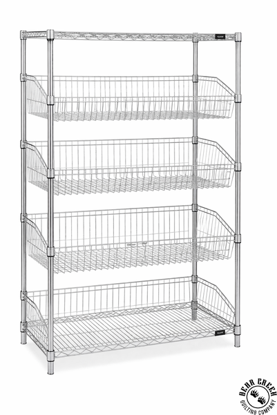 Wire Basket Racks View Larger Image Price: $0.00 1 item(s) available. Item # WIRE-BASKET-RACK Pin It Wire Basket Racks for SaleRetiring/Store Closing! Used in a warehouse for storing fabric. Very clean! No rust! 3 - Basket Shelves 2 - Flat Shelves Adjustable shelves Dimensions: 48" long x 18" deep x 63" high $200.00 each Located in Lebanon, Oregon. Local pickup only.Purchaser is responsible for take down, pickup, transportation, re-assembly, and all associated costs. Related Products Gammill Long Arm Quilting Machine - "Rosie" Item # GAM-2041152383M $0.00 Gammill Long Arm Quilting Machine - "Ruby" Item # GAM-20308212193M $0.00 Gridwall Mobile Rack Item # GRIDWALL-MOBILE-RACK $0.00 Quilt Caddy Batting Rack Item # QC-BATTING-RACK $0.00 Rolling Desk/Task Chair - BLACK Item # ROLLING-CHAIR-BLACK $0.00 Sterilite 15 Quart Clear Latch Tote with Lid - CLEAR/SWEET PLUM Item # LG-CLEAR-TOTE-1753 $0.00 Uline Stackable Space Age Tote - BLACK Item # ULINE-BLACK-TOTE $0.00 Wire Shelving Racks Item # WIRE-SHELVING-7-SHELF $0.00 Wire Slant Rack Item # WIRE-SLANT-RACK $0.00 Wood Administrator Desk Item # WOOD-ADMIN-DESK $0.00