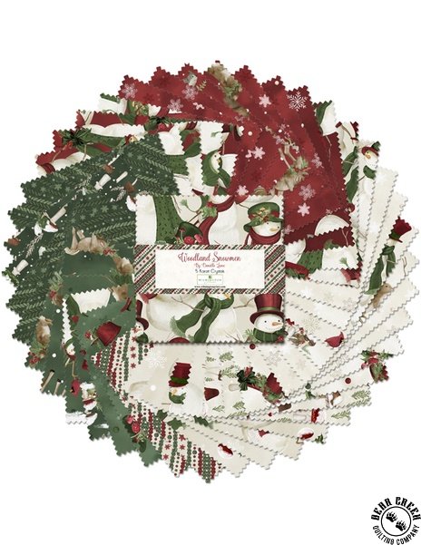 Step into a winter wonderland with Woodland Snowmen,  the delightful new fabric collection by Danielle Leone for Wilmington Prints.  This charming assortment features a large panel, a whimsical repeating stripe, and coordinating prints filled with playful snowmen, woodland animals, and delicate snowflakes—all in a cozy palette of wintry cream, festive red, and forest green.  Perfect for seasonal quilts, home decor, and holiday crafts.