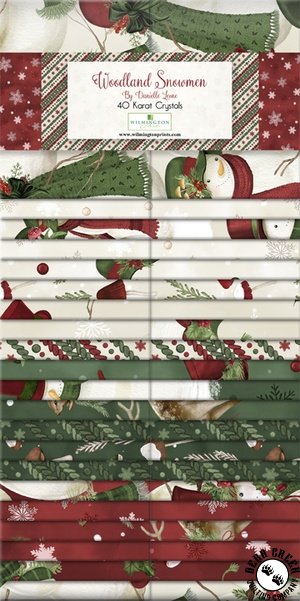 Step into a winter wonderland with Woodland Snowmen,  the delightful new fabric collection by Danielle Leone for Wilmington Prints.  This charming assortment features a large panel, a whimsical repeating stripe, and coordinating prints filled with playful snowmen, woodland animals, and delicate snowflakes—all in a cozy palette of wintry cream, festive red, and forest green.  Perfect for seasonal quilts, home decor, and holiday crafts.