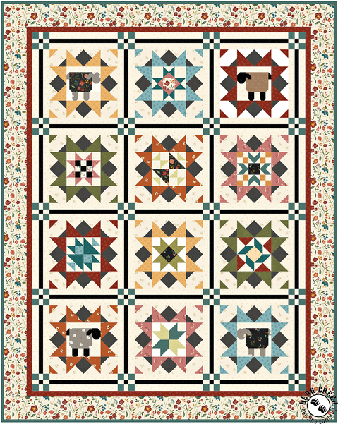 The saturated hues and warm, comforting tones impart a season-spanning charm to their whimsical folk florals, delicate lines, and dainty vintage patterns. The blocks include classic sampler styles with Lamb Farm's signature lamb blocks positioned in the four corners. Traditional piecing of the quilt patterns featured blocks, sashing, and cornerstones makes this quilt design suitable for quilters of various skill levels.